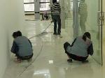 始從左到右的擦拭,不能有遺漏,有膠漬的地方可用除膠劑做處理;框的程序同門;一定要做到無遺漏、無死角